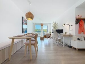 This beautiful three-bedroom, two-bathroom apartment benefits from a southwest orientation, ensuring lovely afternoon light and pleasant sunsets. From the terrace, you can enjoy open views of the surrounding nature, with a partial sea view to the left. The terrace also features a private jacuzzi, perfect for unwinding at the end of the day.