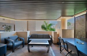 The property features spacious south-facing terraces, perfect for enjoying the Mediterranean sun and creating ideal spaces for relaxation and social gatherings.