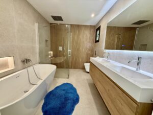Additional luxury features include underfloor heating in the bathrooms, individually adjustable air conditioning, and electric roller shutters.