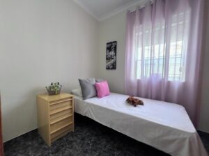 The property offers 3 bedrooms, 1 bathroom, a spacious living room with access to a large terrace boasting panoramic views of the sea and Gibraltar. It is sold fully furnished and includes a fully equipped kitchen with a laundry area.