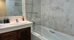 This property features 3 spacious bedrooms, all with built-in wardrobes, and 2 full bathrooms with bathtubs. The apartment also includes high-quality Fujitsu air conditioning, ensuring year-round comfort.