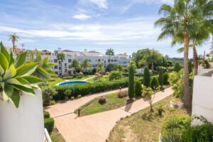 Charming first-floor apartment located in a gated and beautifully maintained urbanization, just five minutes by car from the beach and several golf courses, and ten minutes from both Estepona town and Puerto Banús. The complex stands out for its high-quality construction and well-kept tropical gardens, and offers a large communal swimming pool, a security system with CCTV and controlled access. The property includes a private underground parking space and a good-sized storage room.