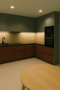 The apartment is currently undergoing a full renovation, focused on contemporary design and premium finishes. At the heart of the home is an open-plan space integrating the living-dining area and modern kitchen—ideal for everyday living and entertaining guests.