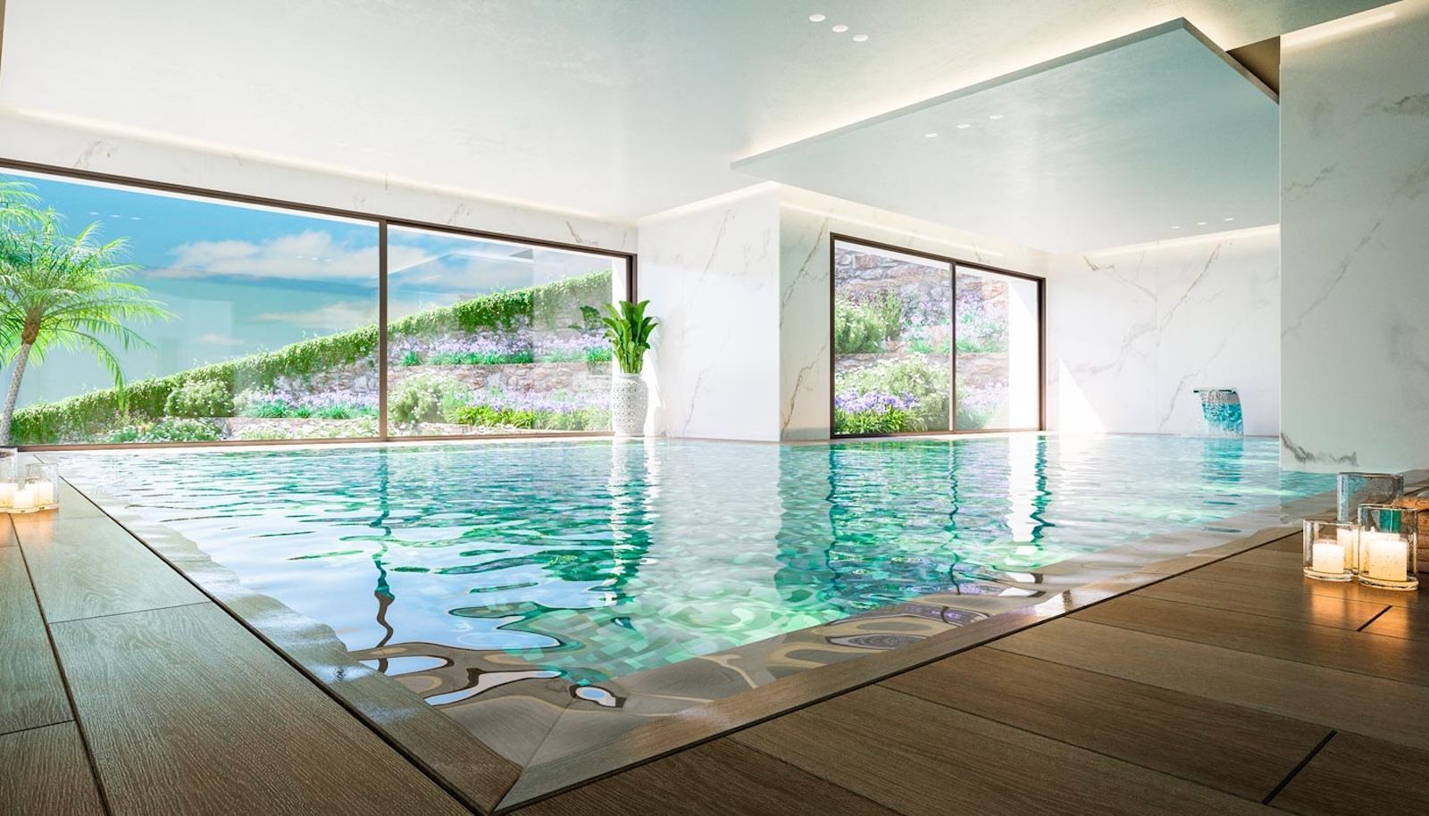 The residential complex offers a range of exclusive amenities designed to enhance the comfort and well-being of its residents, including a heated indoor pool, fully equipped gym, spa with sauna and steam room, and an elegant clubhouse for private events and social gatherings. The landscaped gardens surround a large outdoor swimming pool. In 2025, an exclusive paddle club with eleven courts, wellness area and restaurant will open, further increasing the appeal of this premium community
