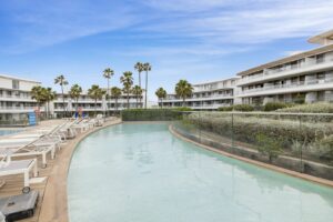 Step out onto the covered front terrace and enjoy tranquil views of the beautifully landscaped gardens, infinity-edge communal pool, and the sparkling sea beyond. A second, southwest-facing rear terrace invites you to relax in the warm glow of the evening sun.