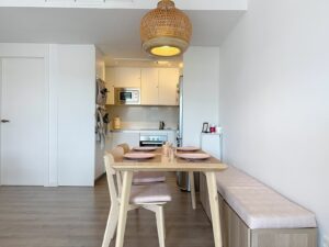 The interior has been designed in a modern Mediterranean style with high-quality materials. The open-plan kitchen, fully equipped (refrigerator, oven, ceramic hob, etc.), opens onto a welcoming living area that extends seamlessly to the outside.