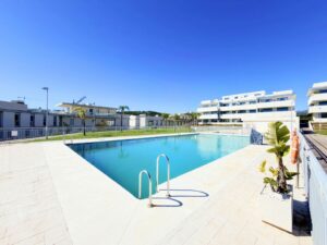 Fantastic ground-floor apartment with a large private garden and open views of the sea and mountains, located in Estepona, in a contemporary residential complex completed in 2021, just 5 minutes by car from the town center and 15 minutes from Sotogrande. The development, with modern design and clean lines, features a swimming pool and well-maintained green areas, creating a pleasant and highly valued environment. The property is in excellent condition, with high-quality renovations and finishes throughout. The open-plan living area combines lounge, dining space, and fully equipped kitchen with custom storage solutions. From here, you can access a spacious covered terrace, ideal for year-round enjoyment. Other upgrades include motorized blinds with a security locking system. The private garden adds a highly desirable extra, providing space, privacy, and multiple possibilities to create different outdoor areas. The master suite features a dressing area, direct access to the porch, and a fully renovated bathroom. A parking space and storage room are included, adding practicality and convenience. An ideal opportunity for those looking for a modern, comfortable home ready to move into, perfect as a permanent residence or a second home on the Costa del Sol.