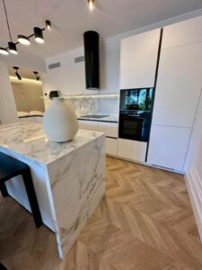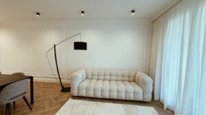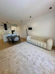 The apartment has been recently renovated and is decorated in a modern style using high-quality materials and stylish design solutions.