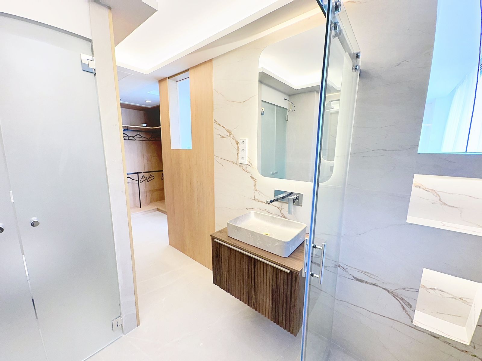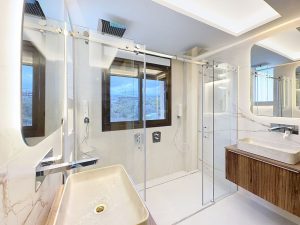 The 47 sqm terrace, fitted with an elegant Lumon glass enclosure system, becomes a truly versatile and privileged area: an additional living room flooded with natural light, perfect for enjoying the winter sun, relaxed dining in spring and autumn, or long evenings overlooking the sea in total comfort. A space designed to make the most of the Costa del Sol’s exceptional climate all year round.