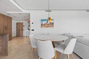 The open-plan living and dining areas flow seamlessly onto the terrace, enhancing the indoor-outdoor lifestyle that defines living on the Costa del Sol. The three well-appointed bedrooms offer comfort and privacy, while the two modern bathrooms are finished to a high standard.