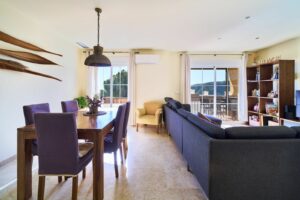On the ground floor you will find a recently renovated kitchen, a guest toilet, and a spacious, bright living and dining area with magnificent views, as well as direct access to the terrace.