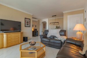 Step outside onto the very spacious terrace and enjoy breathtaking sea and mountain views — with sunshine all year round, both in summer and winter. The complex features beautifully landscaped tropical gardens, two large communal swimming pools, a children’s pool, and a cozy pool bar and restaurant, all maintained to an excellent standard with clean facilities.