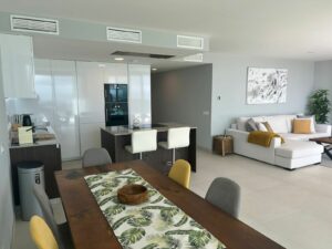 This stunning luxury apartment near La Cala de Mijas is one of the best located within a secure, gated urbanisation (One Residences) providing uninterrupted panoramic golf and sea views. There are three spacious double bedrooms, all en-suite, plus a guest bathroom. As soon as you enter through the main door, there are sea and golf views from the hallway to the lounge and open plan kitchen area, through to the large open (partially covered) terrace. The apartment is being sold fully furnished and is of very high quality. There is under floor heating throughout, air-conditioning with individual room control, remote control cooker, Bang & Olufson TV, etc. No expense has been spared to make this a totally unique experience in Costa Del Sol living. In addition, there is a myriad of high quality and very well maintained facilities including a lagoon pool, an infinity pool, one indoor heated pool with Jacuzzi and sauna, a well stocked bodega, a meeting room with WiFi connection, a luxury cinema, a chill out bar, an indoor golf simulator, an outdoor children's play area, plus a state of the art gymnasium. There are two private underground parking spaces and one store room included in the price. In addition, there is a lovely restaurant in the golf clubhouse next door to the urbanisation that is open all day. So if you are looking for a luxury apartment with fantastic golf and sea views, then please call us to arrange a viewing. Reasonable offers considered.