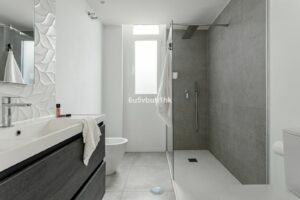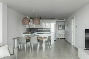 Inside, the open-plan layout combines a fully equipped kitchen, dining area, and bright living room with direct terrace access through elegant sliding doors. The property also includes three generous bedrooms and two sleek bathrooms with spacious showers and underfloor heating, all designed for convenience and comfort.