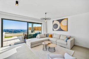 Stylish elevated Luxury three-bedroom, where breathtaking views of the sea and golf course create a serene backdrop for your lifestyle. The open-plan living area seamlessly integrates a fully equipped kitchen with an elegant island, flowing effortlessly into a spacious terrace complete with a BBQ, dining area, and a private pool, perfect for entertaining or unwinding in style.