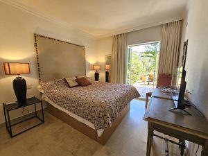 This beautiful ground-floor apartment feels more like a house than an apartment thanks to its large private garden and picturesque open views across the exclusive La Quinta Golf Course fairways and lake. The apartment is well laid out with the spacious living area flowing out on to two private garden areas and a large covered terrace. The bedrooms and bathrooms are ideally located along a corridor off of the living area and all three bedrooms are large double rooms with direct access to the gardens. The master bedroom includes an en-suite bathroom, while the other two bedrooms share a large marble bathroom with a window. This property offers an incredible amount of outdoor space which is so important to the Marbella lifestyle. The large covered terrace is perfect for year-round outdoor living, and the private gardens are ideal for sunbathing and enjoying our beautiful weather. This elegant apartment has marble floors throughout, 2 private gardens, a large covered terrace and hot and cold A/C throughout.