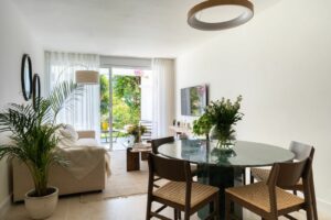 Located in La Quinta, Marbella, this recently renovated ground-floor apartment showcases custom-made furniture, bespoke sinks, and unique marble finishes throughout. It offers 3 bedrooms, 2 bathrooms, and a bright living area opening onto a private terrace surrounded by greenery.