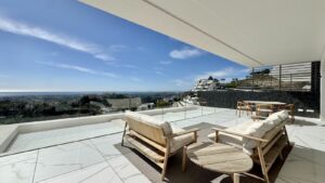 Luxury South-Facing Corner Apartment with Panoramic Sea & Golf Views in Byu Hills, La Quinta, Benahavís.