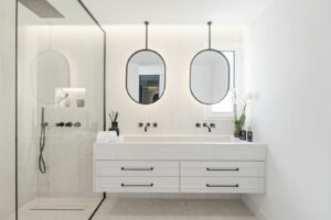 There are two guest bedrooms, each with their own en-suite bathroom, as well as a guest WC hidden behind a panelled wall.