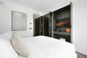 The masterbedroom is sumptuous and elegant with an en-suite bathroom, beautifully detailed wardrobes and closets as well as access to the terrace.