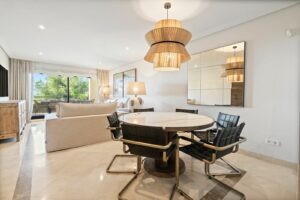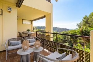 Discover this bright and elegant 3-bedroom, 2-bathroom apartment located in the sought-after Los Pinos community within Los Arqueros Golf & Country Club. Set in a peaceful and secure environment, the property enjoys an elevated position with beautiful views of the gardens and the Mediterranean Sea.
