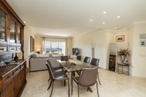 Beautiful 3-bedroom apartment in a prestigious Elviria complex, ideally located next to Greenlife Golf and close to all amenities and the beach. Enjoy lovely sea, coastal, and panoramic green views from this east and west-facing home. Features include a fully equipped kitchen, private and community parking, a stunning communal pool, and lush gardens. A perfect blend of comfort and location.