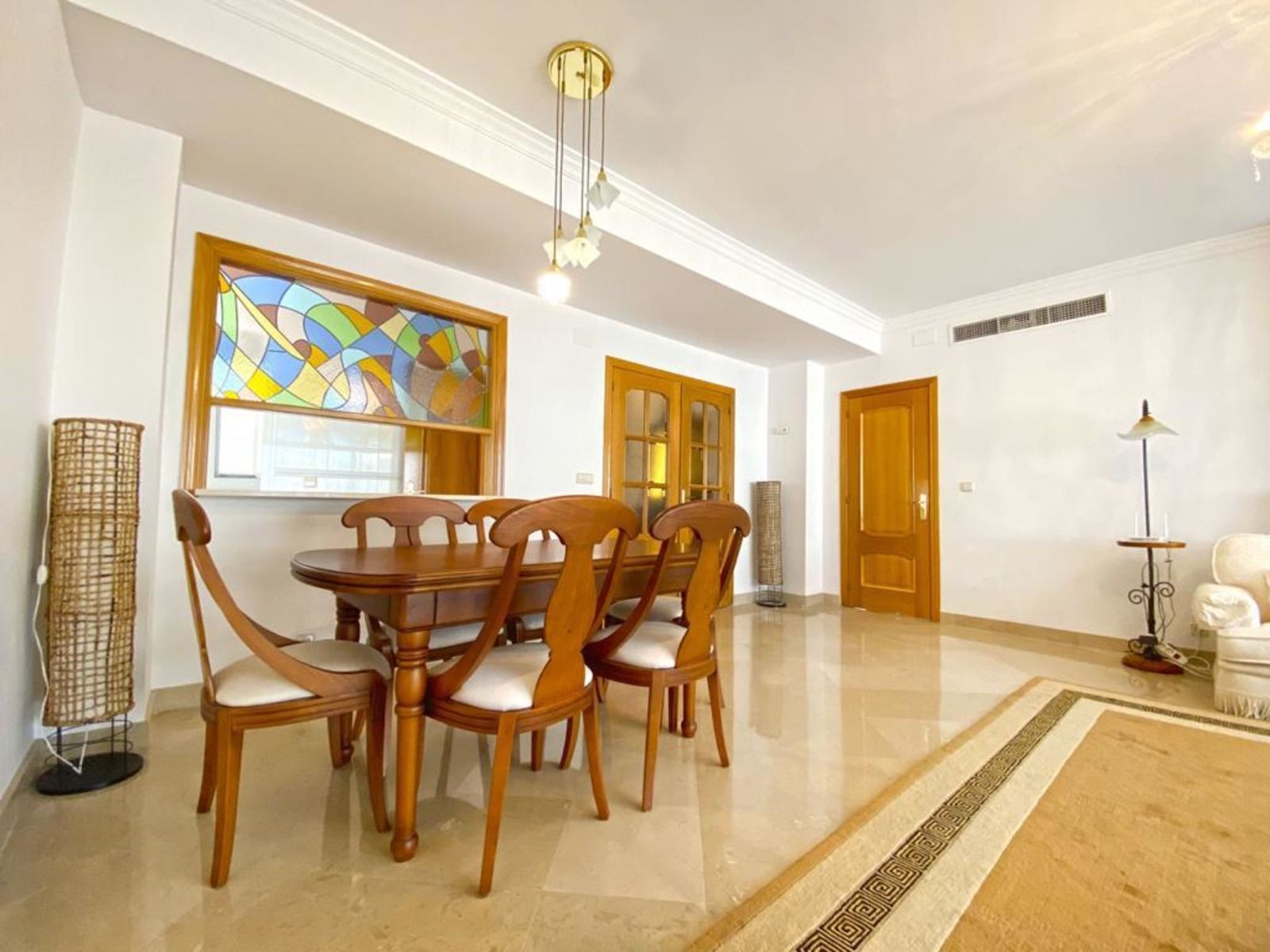 It consists of an entrance with a hall, independent kitchen, living room with high ceilings and a large terrace with morning sun as it faces east and beautiful views of the community gardens and the sea. Master bedroom with built-in wardrobes and en-suite bathroom with bathtub; 2 other bedrooms with bathroom with shower. Both the bathrooms and the kitchen have underfloor heating and the entire apartment has central A/C.