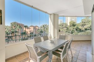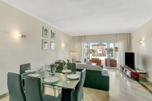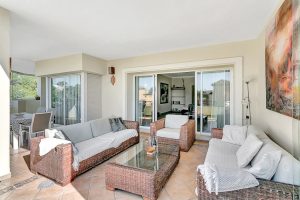 Beautiful and spacious three bedroom , two bathroom and guest toilet third floor southwest facing corner apartment in Hacienda Playa, beach side of Elviria in East Marbella with holiday rental license. The apartment offers lovely sea and mountain views, large corner terrace with glasscurtains, AC hot and cold, marble floors, double glazing windows, underground parking space, storeroom and lift. Hacienda Playa offers two community pools, beautiful communal gardens and a paddle tennis court and is well kept throughout the whole year, only 5 min walk to the beach and within walking distance to all local amenities. The centre of Marbella is a short 10 minutes drive away.