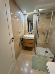 The apartment features 110 m² built and has been completely refurbished with high-end finishes. It offers a bright and spacious living-dining area with large windows, modern open-plan kitchen, and elegant décor throughout. The bathrooms have underfloor heating, and the property is equipped with air conditioning. Sold fully furnished and ready to move in.
