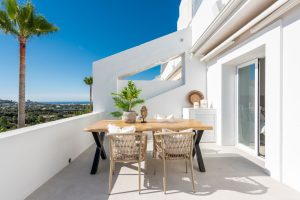 Discover this beautifully refurbished middle-floor apartment located in La Quinta, Benahavís. Offering approximately 100 sqm of elegant interior space, the property combines comfort, light, and open views in a serene setting. The generous terrace enjoys panoramic mountain scenery with glimpses of the sea, creating the perfect space for outdoor dining, morning coffee, or evening sunsets.