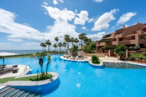 Positioned within a prestigious beachfront development on the highly desirable New Golden Mile between Marbella and Estepona, this spacious three-bedroom apartment offers a refined blend of comfort, lifestyle, and coastal elegance. The property benefits from a registered and transferable Andalusian tourist licence, allowing legal short-term rentals for up to six guests, making it an excellent option for both lifestyle buyers and investor – with current rental income estimated at €45.000 to €50.000 per year.