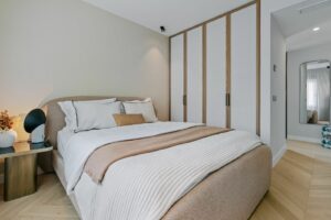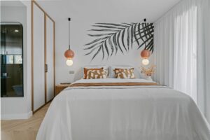 The apartment features three spacious bedrooms, two with en-suite bathrooms, an additional bathroom, and a guest toilet. Designed by the award-winning Studio Marbella / Amura Interiors, the home combines high-end finishes with functional elegance. Large floor-to-ceiling windows flood the interior with natural light and frame the spectacular surroundings.