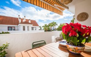 This exquisitely three-bedroom apartment is ideally located in the heart of Nueva Andalucía, within easy reach of all amenities and just minutes from the beach. Situated on the first floor of a charming gated community, the property combines contemporary comfort with the timeless appeal of Andalusian-style living.