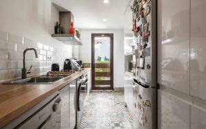 Upon entering, a welcoming hall leads into a bright and spacious living and dining area, which opens onto a private terrace overlooking the beautifully maintained communal areas. This outdoor space is perfect for relaxing or enjoying meals al fresco in a tranquil setting.