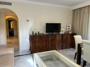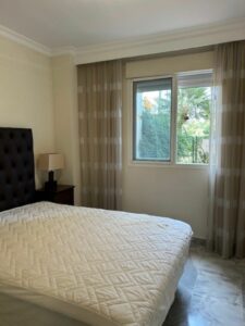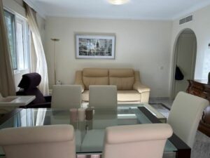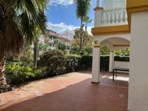 Spacious corner ground floor apartment of 3 bedrooms, 2 bathrooms, big lounge and dining area with exit to a West facing terrace of 68 m2, fully fitted kitchen. Has cold and hot A/C, metallic shutters in all windows and underground parking for 1 car