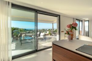 This exceptional property features a high-end open-plan kitchen, complete with double wine coolers and premium finishes, seamlessly blending functionality with contemporary Nordic-style décor. Inspiring furniture enhances the serene, inviting atmosphere, while natural light floods the interiors, offering breathtaking views of the Mediterranean Sea, Gibraltar, and Morocco.