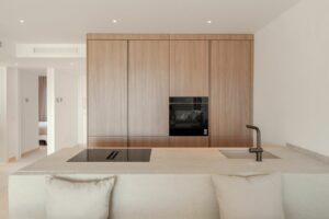 The apartment comprises three generously sized bedrooms, including one with a private en-suite bathroom, ensuring comfort and privacy for both residents and visitors. Underfloor heating in the bathrooms, providing year-round comfort.