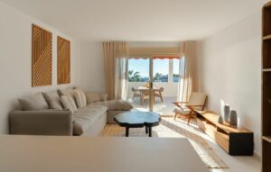 This stunning three-bedroom first floor apartment, located in the sought-after area of Nueva Andalucía, Marbella, offers an exceptional blend of etnic-Scandinavian, boho design, comfort, and elegance. Fully refurbished to an impeccable standard, the property boasts a bright open-plan living and dining space, thoughtfully created for both everyday living and effortless entertaining.