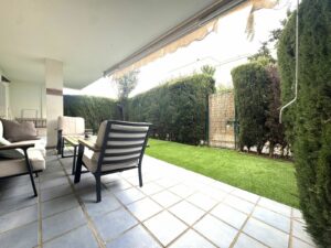 Beautiful and spacious 3-bedroom ground floor apartment located in Nueva Andalucía, Marbella. Set within a well-maintained and highly desirable community, the property is within walking distance of local amenities and the renowned Real Club de Pádel. The apartment comprises a spacious and bright living room, an upgraded fully fitted kitchen, and three large double bedrooms. The master bedroom features an en-suite bathroom, while the two additional bedrooms share a well-appointed family bathroom. South-facing, the property enjoys sunshine throughout the day, with a generous terrace and private garden that offers direct access to the communal areas. The development boasts two swimming pools, perfect for enjoying Marbella’s exceptional climate year-round.