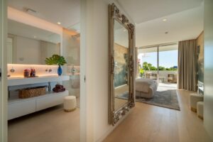 A bright open-plan living and dining area with floor-to-ceiling windows connects seamlessly to a large south-west orientation facing terrace of over 62 m². From here, you can enjoy spectacular views of the Mediterranean Sea, Gibraltar and even the African coastline.