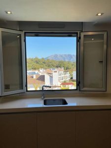 The apartment is presented in immaculate condition and features many extras, including custom-made furniture, fitted wardrobes and insect/mosquito screens on all windows. The bright living room opens onto a sunny terrace with sweeping sea views, while the fully equipped open-plan modern designed integrated kitchen with quartz worktop, offers additional storage cupboards and Bosch integrated appliances.
