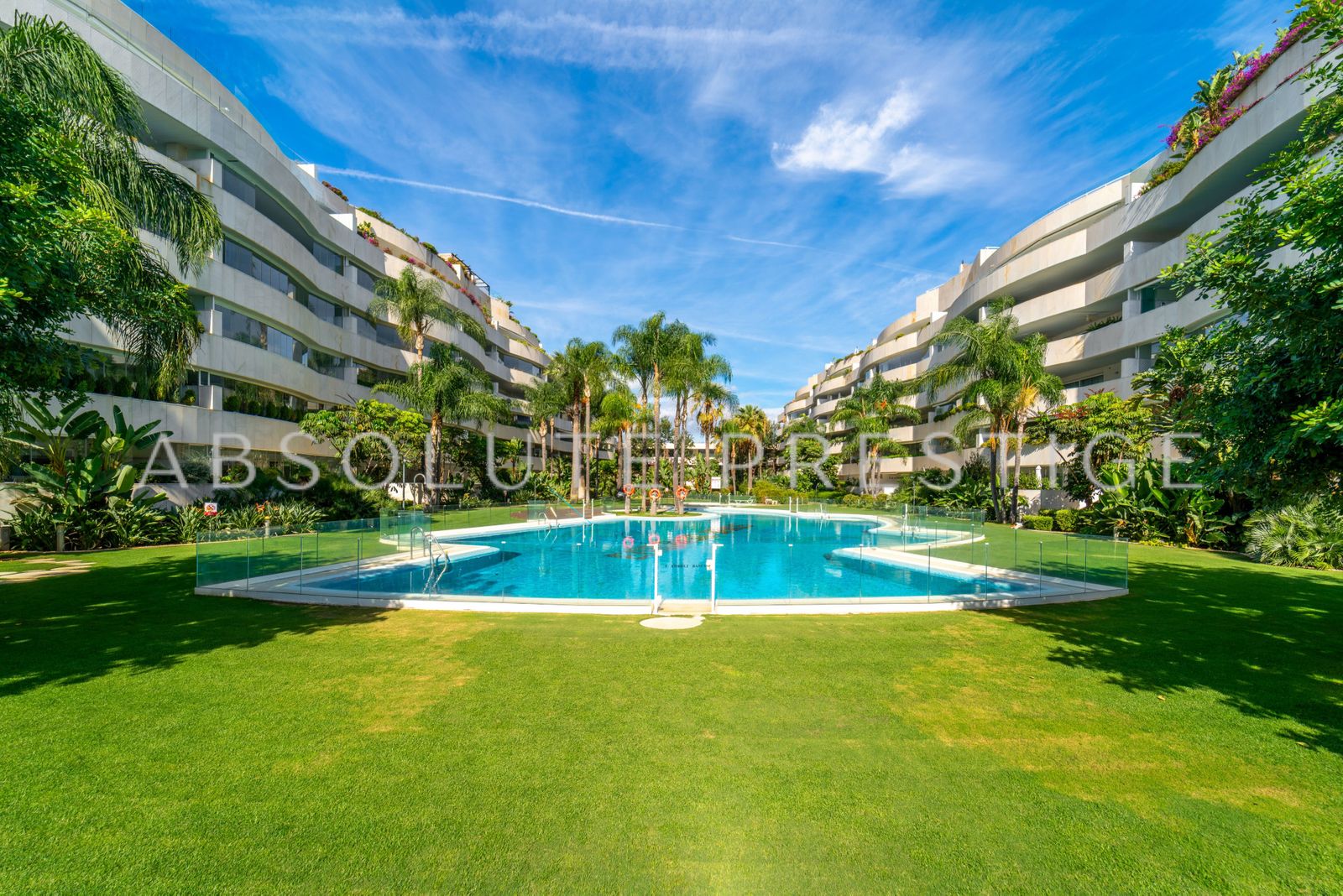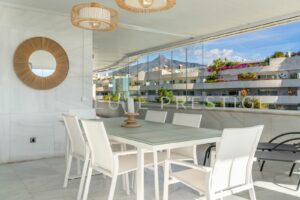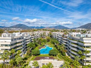This exclusive apartment is located in the renowned residential complex El Embrujo Banús, just a few steps from the famous Puerto Banús marina in Marbella. The location is distinguished by its immediate proximity to amenities, shopping facilities, public transport, and the beach. The residential complex offers a high level of security with 24-hour security service, surveillance cameras, and a gated community.