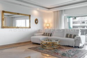 With a generous living area of 273 m² and a 60 m² private terrace, the apartment features three bedrooms, all with en-suite bathrooms, as well as an additional guest WC. The fittings include a fully equipped kitchen, air conditioning, double-glazed windows, electric shutters, and built-in wardrobes. The apartment is in excellent condition and comes with a private garage space, a storage room, and its own basement area.