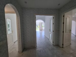 Inside, the home includes three bedrooms and two bathrooms, complemented by a spacious living area with direct access to the outdoor spaces. The property is in need of renovation, offering an excellent opportunity to design and create a fully personalized home tailored to the new owner’s taste.