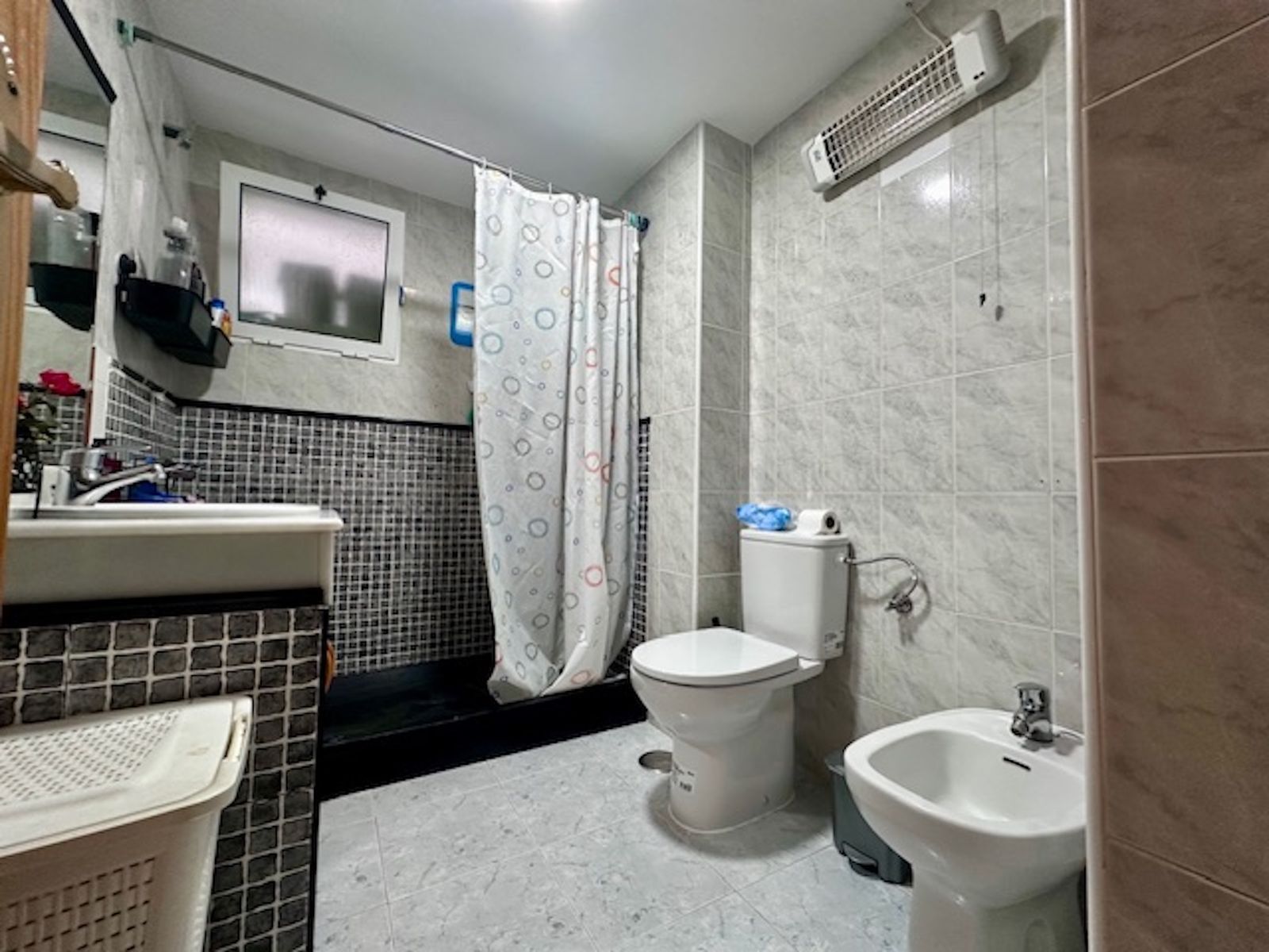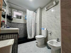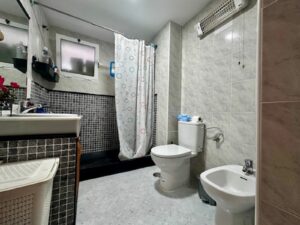 In the same entrance hall, there is a full bathroom with a shower.