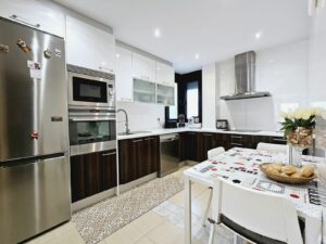 The generously sized kitchen includes a separate utility room, and the spacious living and dining area leads out onto a covered terrace, seamlessly connecting the indoor and outdoor spaces. Ideal for families looking for more outdoor space or for investors seeking strong rental potential in a desirable location.