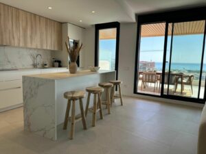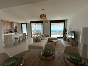 Step into this incredibly spacious property, featuring a 52m² living room with large windows that open up to a generous terrace, providing an opportunity to admire the wonderful sea views and the stunning sights of Gibraltar and the African coast. The open concept kitchen is fully equipped with top-of-the-line Bosch appliances, all under guarantee.