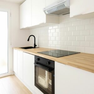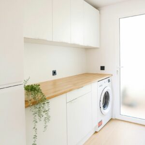 Modern Kitchen: Fully equipped with high-end appliances and a dedicated laundry area for everyday ease.