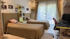 The complex has 114 apartments, a sports club, a fully equipped gym, a sauna, a jacuzzi, a Turkish bath, an indoor heated pool and an incredibly beautiful communal pool with a waterfall and a solarium outside, columns, arches, pergolas and panoramic windows that give this complex a special charm. On the territory of the complex there are parking spaces, a wonderful bar and restaurant, 24-hour security.