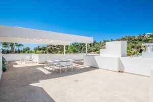 Located in the sought-after Atalaya area of Benahavís, just minutes from the picturesque town of San Pedro de Alcántara, this luxury duplex penthouse is built to the highest modern standards and boasts stunning views across the golf course towards the sea.